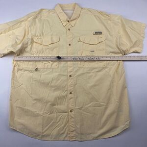 Columbia PFG Bonehead Yellow S/S Button Up Shirt 100% Cotton Polyester Lined XXL
