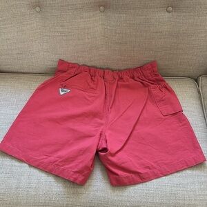 These cotton shorts are designed for comfort on the water with built-in UPF 50, a partial elastic waist, and a special pocket just for your beverage.