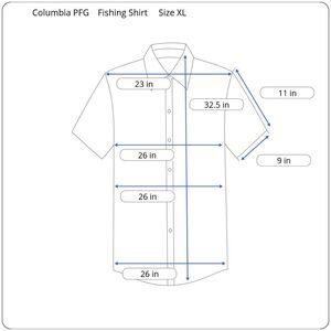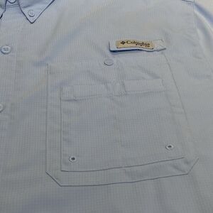 This is a lightly worn Men's Columbia PFG Crystal Springs Short Sleeve Light Blue Vented Fishing Shirt in a Size XL. This shirt is in very good pre-owned condition overall with a tiny pinhole on the chest next to the pocket (see photos). It has very little wear, no stains, and no other damage. The shirt has a vented back with a polyester mesh lining, five pockets, a utility loop, and a hook & loop fastened rod holder. The UPF 40+ material is very lightweight with a silky feel to it and some stretch. I encourage you to enlarge the photos to view small details and to review the measurements on photo #10 to determine fit. If you have any questions about this item, please ask!