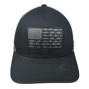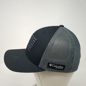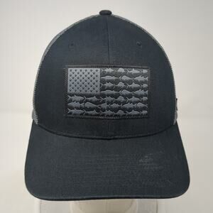 Columbia PFG Fish Flag Fitted Trucker Cap Black Medium Mesh Back Patriotic