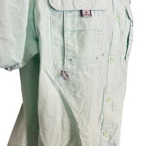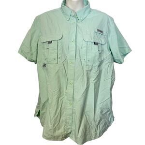 Columbia PFG Fishing Aqua Green Button Down Short Sleeve Vented Shirt sz XL