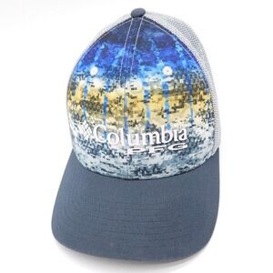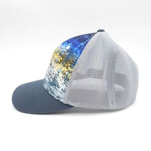 Columbia PFG Fishing Mesh Flex Fit Fitted Hat Blue Cap Large Puff Logo Hiking