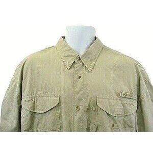 Columbia PFG Fishing Shirt Khaki Button Up Vented Mens Size XL