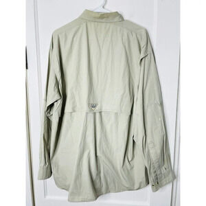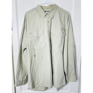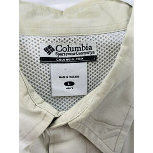 Columbia PFG Fishing Shirt Sz L Men Vented Back Roll-Tab Sleeve Button Down Tan