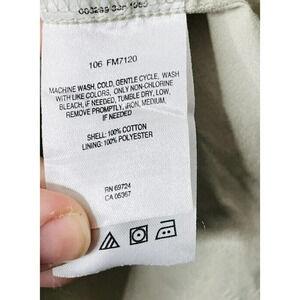 pre-owned and in great condition. There is discoloration around the neck line. There are also some stains. See photos for reference to flaws.