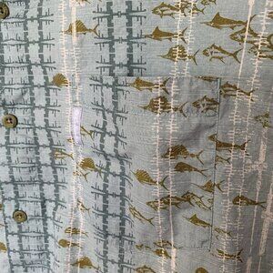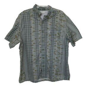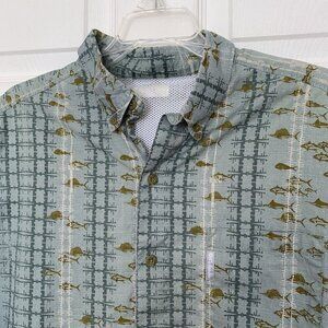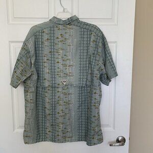 Columbia PFG Fishing Tuna Blue Green Mens Large Button Cotton Shirt