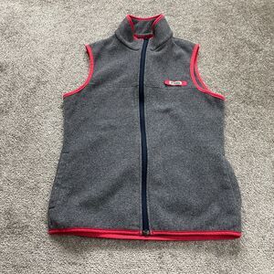 Columbia PFG Harborside Fleece Vest Womens Medium Gray Red Full Zip Outdoor Hike