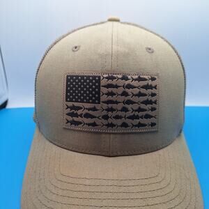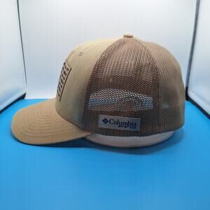 The Columbia PFG Hat Cap is a stylish and practical accessory suitable for a variety of occasions. With a solid beige color and a patriotic American Flag patch, this flexfit trucker hat is perfect for outdoor activities such as fishing. The mesh back design allows for airflow and breathability, while the lightweight and stretchy material ensures comfort. This unisex Columbia hat is a versatile addition to any wardrobe, symbolizing both American pride and a love for the outdoors. Made from a blend of polyester and spandex, this canvas fabric trucker hat is designed for durability and style.