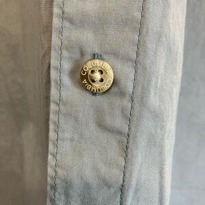 Light blue Columbia PFG shirt. Short sleeves with button-up design. Ideal for fishing.