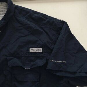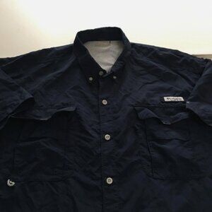 Columbia PFG Mens 3XL Blue Short Sleeve Button Shirt Fishing Vented Omni-Shade