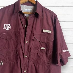Columbia PFG Men's Maroon Texas A&M Short Sleeve Fishing Button-Up Shirt Size M