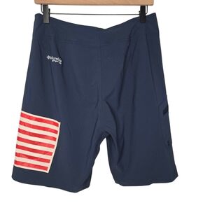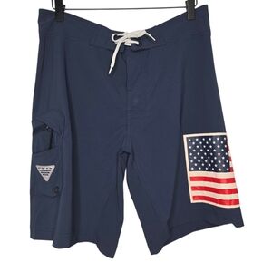Columbia PFG Mens Outdoor Fishing Navy Blue American Flag Swim Trunks Size 32