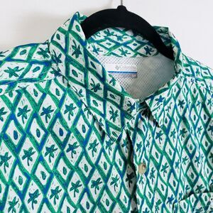 Columbia PFG Mens S Green Super Slack Tide Camp Shirt Palm Tree Fishing UPF