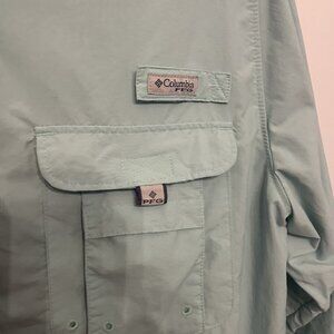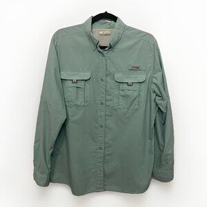 Columbia PFG Mens Shirt Large Green Button Down Vented Fishing Nylon Outdoor VTG