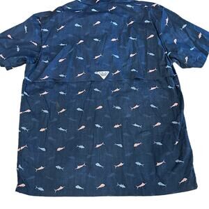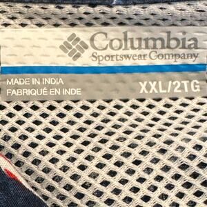 Columbia PFG Mens XXL Vented Back Cotton Fishing Shirt Navy Patriotic Fish