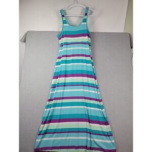 Columbia PFG Omni Wick Blue Striped Maxi Tank Dress Women's Large Stretch