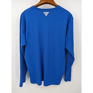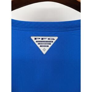 This Columbia PFG Omni-Freeze long sleeve performance shirt in bright blue is designed for fishing and outdoor activities. Men’s size XXL (see measurements below). Features Omni-Freeze cooling technology to help keep you comfortable in warm conditions. Made in Bangladesh. Lightweight, breathable fabric with Columbia PFG logos on the chest, back, and sleeve. Ships in box to preserve condition.