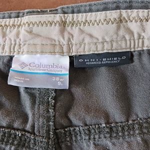 Columbia PFG Omni-Shade Denim Cargo Shorts Mens 38x9" Fishing Olive Green good used condition see photos for details