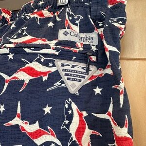 Columbia PFG Omni-Shade Lined Swim Trunks – American Flag Fish Print – Men’s XL
