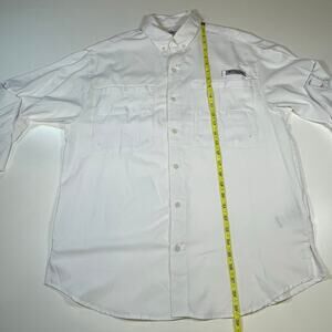 Classic Columbia PFG performance shirt built for sun protection and functional outdoor wear. Features Omni-Shade UPF fabric, mesh venting, four utility pockets, and roll-tab sleeves for adaptable comfort. Ideal for fishing trips, travel, hiking, and summer boat days. The crisp white finish pairs easily with technical shorts or cargo pants, channeling the practical style seen in coastal adventure gear.