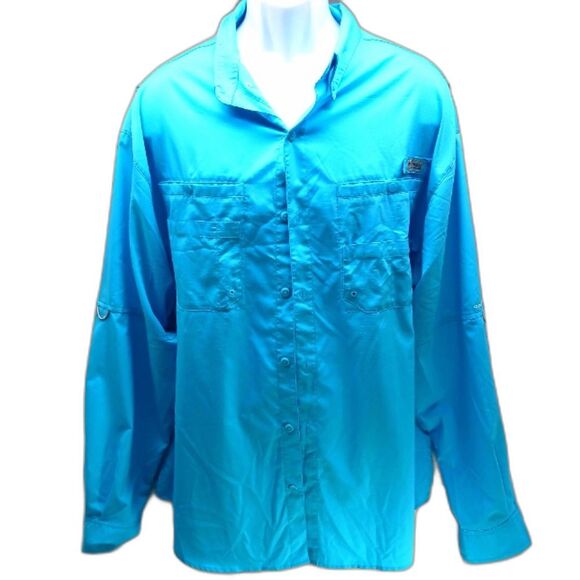 Columbia PFG Performance Button Down Long Sleeve Omni Shade Men's XLT. Blue.