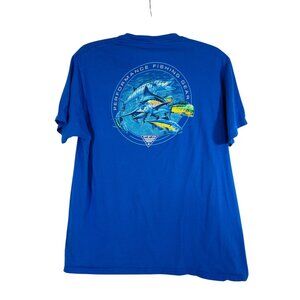 Columbia PFG Performance Fishing Gear Graphic Tee XL Blue Cotton Mens Shirt