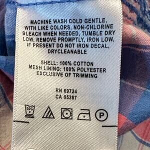 This Columbia PFG button-up shirt is perfect for any outdoor adventure! The pink and blue plaid pattern is both stylish and fun, while the long sleeves provide extra protection from the sun. Made from comfortable cotton material, this shirt is perfect for everyday wear.