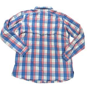 Columbia PFG Pink & Blue Plaid Long Sleeve Cotton Outdoor Button Up Shirt Medium