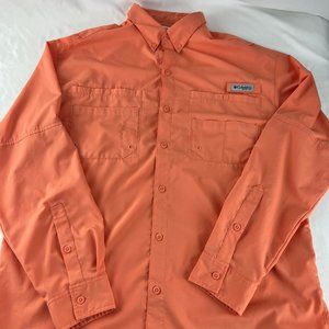 Columbia PFG Shirt Men L Orange Button Down Omni Shade Outdoors Fishing Camp