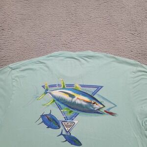Columbia PFG Shirt Mens Large Green Outdoor Fishing Casual Graphic Tee Spellout