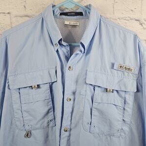 Columbia PFG Shirt Men's Large Vented OMNI Shade Bahama Fishing Outdoor Sky Blue