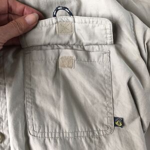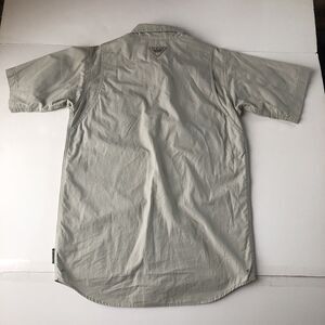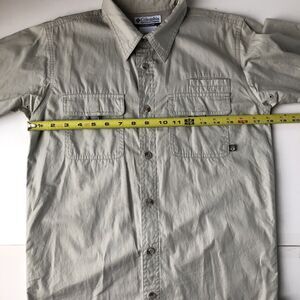 This Columbia PFG shirt for boys in size XL is perfect for outdoor activities such as hiking, travel, and casual wear. The shirt is made of breathable cotton material and features a solid pattern with a beige color, button closure, and a collared neckline.