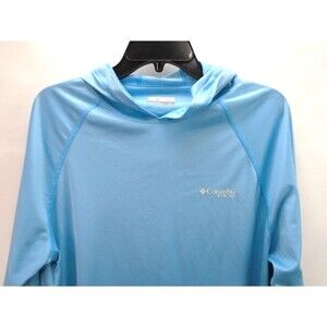 Columbia PFG Sun Hoodie Shirt Mens L Blue Omni-Shade Long Sleeve Fishing UPF 50