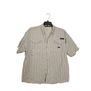 Columbia PFG Super Bonehead Shirt Mens XL White Plaid Button Vented Short Sleeve