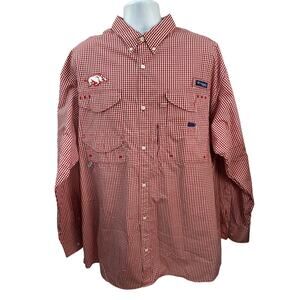 Columbia PFG Super Bonehead Shirt Size XL Arkansas Razorbacks Gingham Check Fishing Outdoor Style