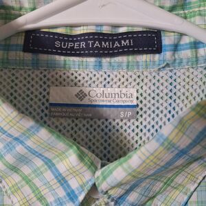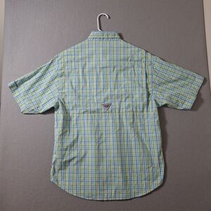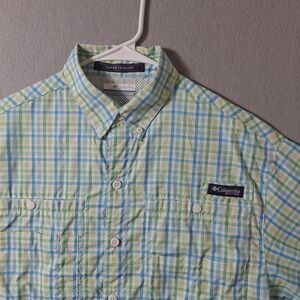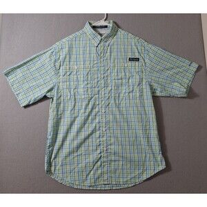 Columbia PFG Super Tamiami Shirt Mens S Blue Green Plaid Omni-Shade Fishing