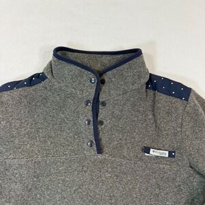 Columbia PFG Sweatshirt Women XL Gray Fleece Pullover Navy White Polka Dot Trim