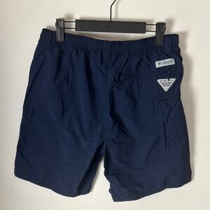 Gently Used Columbia PFG Swim Trunks. These are a men's small. Navy blue color throughout. Mesh lined. Front and back pocket. PFG logos on the back. 8" inseam.