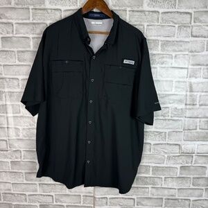 Columbia PFG Tamiami Solid Black Polyester Button Up Fishing Shirt Mens 2XL