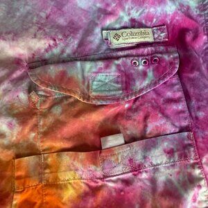 Mens Columbia PFG Performance Fishing Gear Tie Dye short sleeve button up shirt