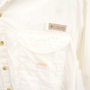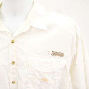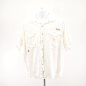 Columbia PFG Vented Fishing Shirt Cream Collared Button Front Large Short Sleeve