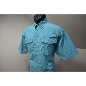 Columbia PFG Vented Fishing Shirt Omni-Shade Blue Short Sleeve Mens Sz Small