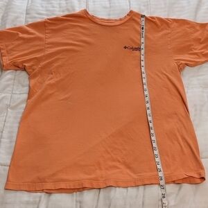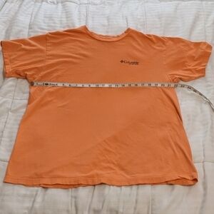 Columbia PFG performance fishing gear graphic tee size extra large. the shirt is nice and soft and lightweight and very classic. there are a couple discolorations but they're hardly noticeable. this is the perfect addition to your summer gear. if Columbia brand is your favorite style I have another t-shirt in the same brand and size in my closet and I offer 50% off of any bundle of two items or more
