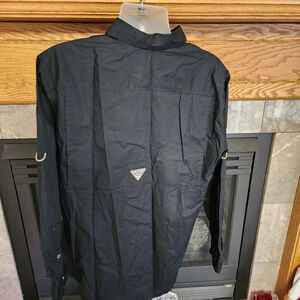 The Columbia PHG Long Sleeve Button Shirt for Men in size LT features a vented design with a camo pattern, offering lightweight, breathable comfort. Ideal for outdoor activities, this shirt is durable, moisture-wicking, and designed for functionality and style.