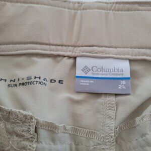 Columbia Palm Peak Capri, PFG (performance fishing gear), size 16, inseam 21", color khaki tan.