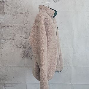 Sherpa Fleece by Columbia made for the fisherman in mind with an easy fit for a comfortable range of motion and a full zip front with offset green piping. Good pre-owned condition with normal signs of wash and wear.