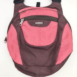 Columbia Pink Brown Nylon Canvas Mini Sport Performance Crossbody Bag