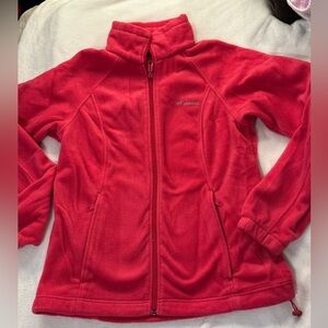 Cozy fleece jacket by Columbia. Vibrant pink color. Full zip front. Perfect for chilly days.