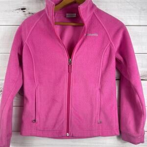 Columbia Pink Fleece Zip Up Jacket Size M 10/12 Girls