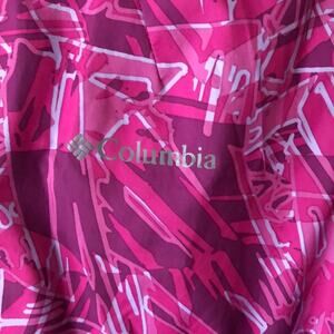 Columbia Pink Geometric Pattern Windbreaker Full Zipper Jacket With a Hood